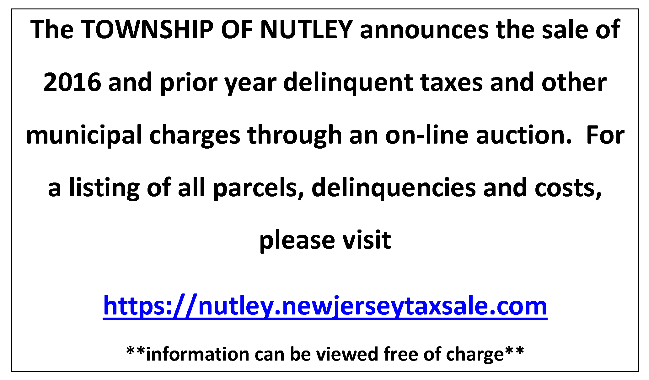 PLEASE TAKE NOTICE, the Governing Body of the Township of Nutley, County of Essex, State of New Jersey may require an Executive Session at any given meeting listed below. In accordance with N.J.S.A. 10:4-12 the Governing Body will adopt a resolution at an open meeting indicating the reasons for going into an Executive Session.